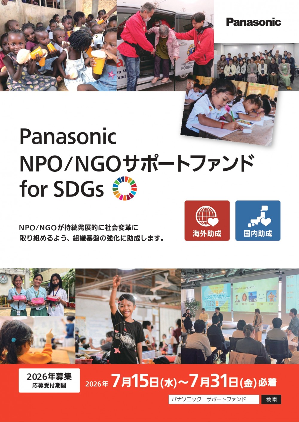 本助成プログラムの2026年募集の概要をホームページに公開しました。https://holdings.panasonic/jp/corporate/sustainability/citizenship/pnsf/npo_summary/2026_recruit.html