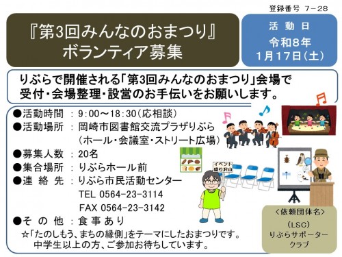 『第3回みんなのおまつり』ボランティア募集≪7-28まちびとバンク≫
