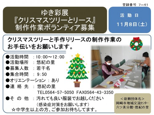 ゆき彩展 『クリスマスツリーとリース』 制作作業ボランティア募集≪7-41まちびとバンク≫