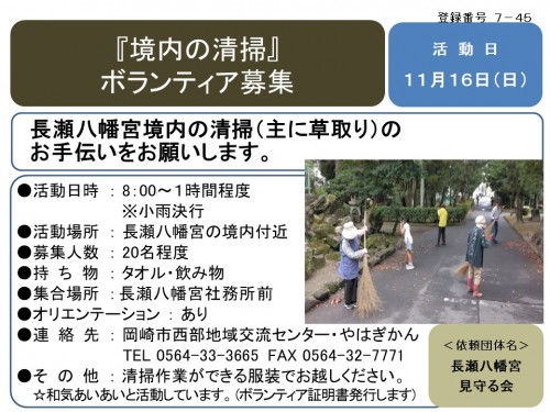 『境内の清掃』ボランティア募集≪7-45まちびとバンク≫