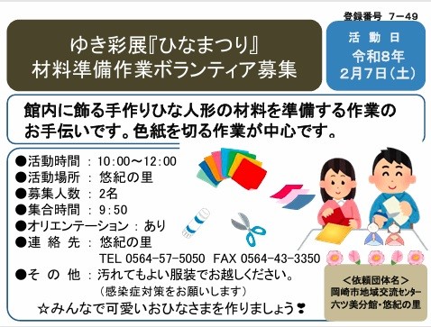 「ひなまつり」材料準備作業ボランティア募集
