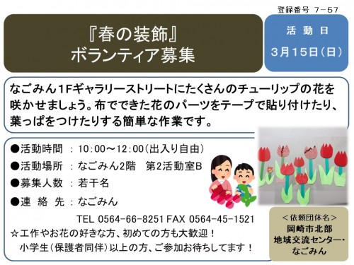『春の装飾』 ボランティア募集≪7-57まちびとバンク≫
