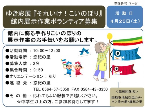 「それいけ!こいのぼり」館内展示作業ボランティア募集