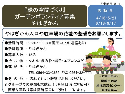 『緑の空間づくり』 ガーデンボランティア募集 やはぎかん≪8-1まちびとバンク≫