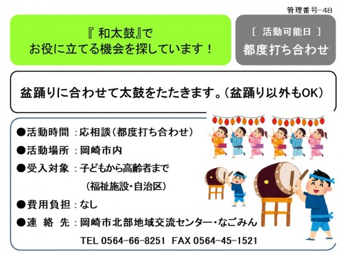 『 和太鼓』で お役に立てる機会を探しています!≪管理番号-48まちびとステージ≫